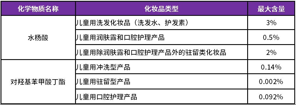 2025年5月2日,欧盟消费者安全科学委员会(SCCS)发布SCCS/1674/25、SCCS/1675/25号文件,即关于儿童化妆品中对羟基苯甲酸酯、水杨酸的使用要求发布最终意见。具体内容如下表所示。该规定将于欧盟官方公报发布后正式生效。